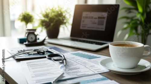 Medical debt planning in a sleek home office. Featuring financial organization and clarity