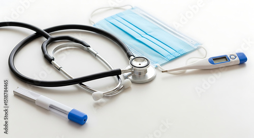 Medical Equipment Stethoscope, Mask, Thermometer, and Disposable Lancet