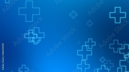 Medical health blue cross neon light shapes pattern background. Abstract healthcare technology and science concept.