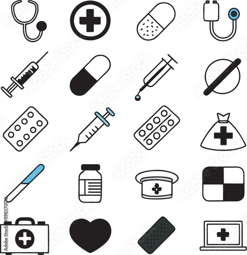 medicals, health care, stethoscope, syringe, pill, first aid, hospital, thermometer, bandage, medical equipment, pharmacy, heart rate