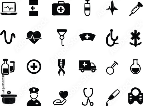 icon, hospital, nurse, emergency, pharmacy, medicals, clinic, vector, design, nubes, ribbon, illustration, doctor, white, health, line, black, menu, medicine, cyberspace, science, web, signs, deoxyribonucleic acid, healthy, set, stethoscope, cancer, care, blood, cross, chemistry, syringe, drug, capsule, microscope, thermometer, human, breast, pulse, pill, ambulance, wheelchair, bandage, caduceus, tube, aid, symbol, injecting