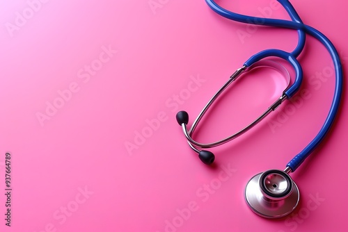 Medical stethoscope on a pink background Concept of health care, medicine, virus, epidemic, high quality, the best in the world Banner Flat lay, top view