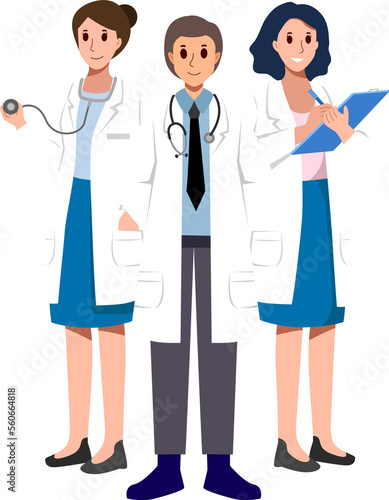 doctor, group, character, stethoscope, physician, professional, hospital, health, medicals, scientist, uniform, people, team, health care, cartoon, gown, white, coat, illustration