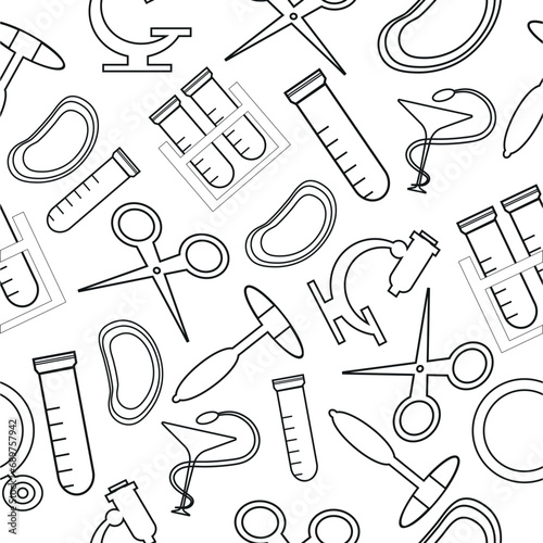 seamless pattern, pattern, medicine, set, icon, icon, medicals, pulse, laboratory, flat, hospital, clinic, line, alphabet, letter, tool, test tube, scissors, syringe, drug, pill, ampoule, plaster, doctor, health, cartoon, ambulance, collection, design, vector, illustration, microscope, thermometer, object