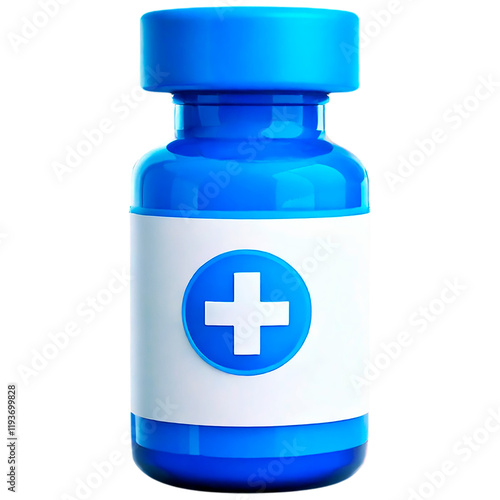 medical vaccine vial 3d icon illustration render design, blue and white color scheme, on a transparent background