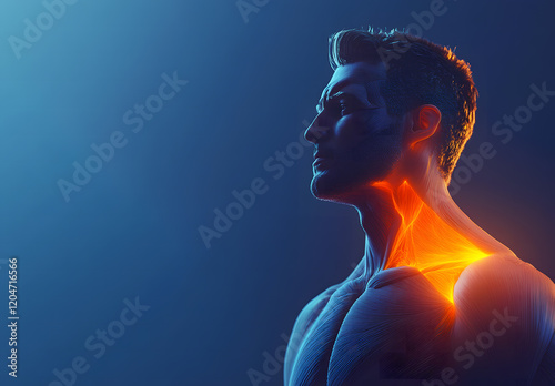 Medical Visualization of Glowing Cervical Spine and Shoulder Anatomy
