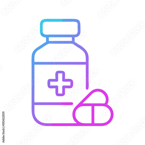 medicine, bottle, pill, icon, gradient, outline, vector, health care, pharmacy, medicals, medication, treatment, pharmaceutical, line art, simple, minimalistic, prescription, drug, capsule, health, wellness, supplement, first aid, medical treatment, colourful, doctor