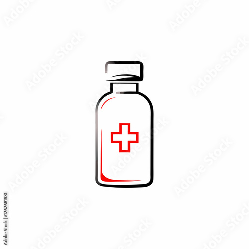 bottle, medicine, cross, symbol, medicals, health care, pharmacy, treatment, first, aid, emergency, care, outline, black, red, simple, minimal, design, illustration, vector, graphic, professional, clinical, prescription, medication, drug, container, supply, equipment, health, wellness, therapeutic, remedy, make well, storage, cardboard box, modern, clean, technical, space