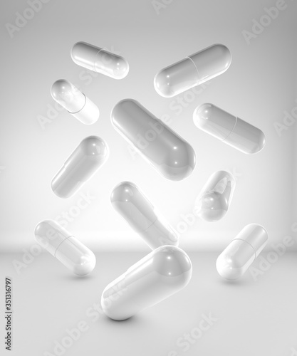 Medicine capsules on white background