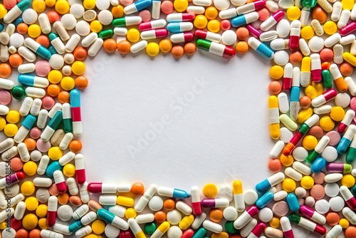 medicine, pill, frame, drug, medicals, medication, medicative, treatment, make well, health care, capsule, white, blank, space, center, empty, border, theme