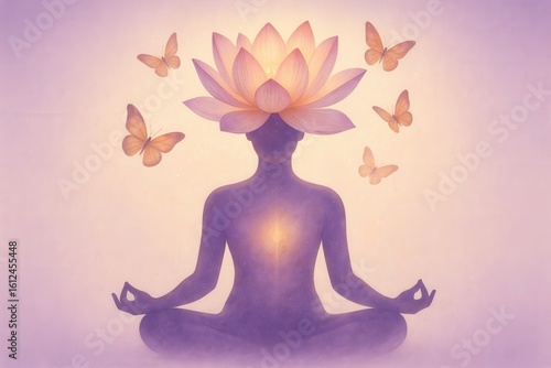 Meditation and mindfulness concept with lotus flower blooming from serene human silhouette