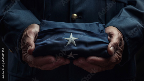 Medium close-up of a person holding a folded flag, symbolizing the significance of national pride and honor.