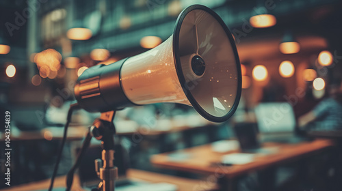 megaphone, workspace, communication, influence, connection, announcement, office, modern, speaker, sound, technology, meeting, puckered, interior, design, collaboration, amplify, business, team, corporate, alert, attention, environment, electronic, lecture, public, space, ambient, professional, decor, furniture, people, casual attire, contemporary, gathering, work, speaking, acoustic, vocal, tool, interactive, dynamic, group, organisation, event, presentation, urban