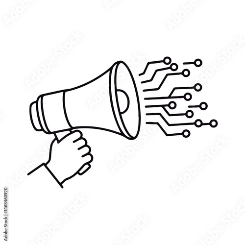 announcement, communication, digital, electronic, megaphone, loudspeaker, broadcast, marketing, technology, ai, artificial intelligence, signal, amplify, voice, message, promotion, advertising, media, tech, innovation, future, modern, connection, network, circuit, chips, information, datum, widener, awareness, alert, news, notification, online, virtual, automation, progress, development, sound