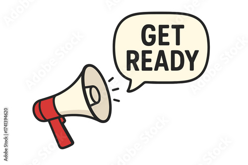 get ready, megaphone, announcement, ready, promotion, advertising, marketing, alert, attention, loudspeaker, sale, banner, icon, vector, illustration, business, communication, message, speech bubble, announce, warning, information, offer, post, design, graphic, symbol, bullhorn, speaker, voice, shout, speak, talk, news, upcoming, notification, urgent, prepare