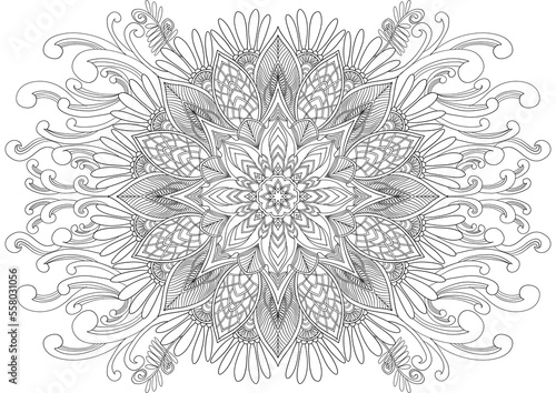 Mehndi Henna Drawing Circular Mandala pattern for tattoo, decoration premium product poster or painting. Decorative ornament in ethnic oriental style. Outline doodle hand draw illustration.