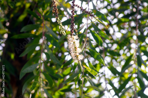 Melaleuca cajuputi flowers, Cjuput, in shallow focus, with blurred background