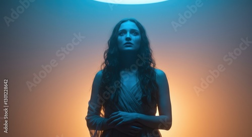 woman, portrait, melancholic, standing, light background, historical, fashion, emotion, art, painting, dress, figure, lady, 1800s, vintage, retro, beauty, still life, portraiture, sorrowful, gown