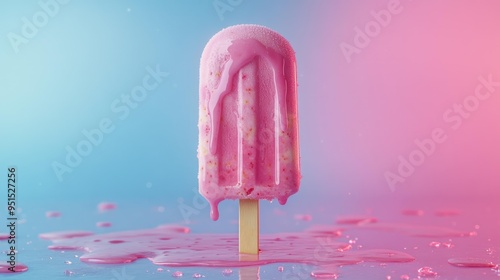 Melting Pink Popsicle with Blue and Pink Background Generative AI