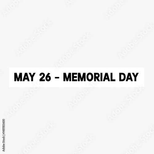 Memorial day announcement featuring may twenty-sixth date with bold black typography
