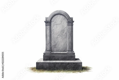 white background, single object, architecture, hand-painted, illustration, spirituality, digital artwork, studio shot, background, copy space, gravestone, aesthetic, headstone, sculpture, gravestone, cemetery, isolated, memorial, historical building, outdoors, absence, coloured, cut-out, drawing, graphic, history, minimal, sorrowful, texture, pastel, crayons, shadow, black, death, grass, grave, plant, stone, white, tomb, day