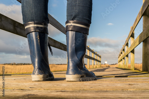 bridge, wooden bridge, way, way of life, live, rubber boot, future, chance, rain, objective, change, new, away, newly, concept, start, start, bridge, nature, north sea, foreshore, waterproof, challenge, weather