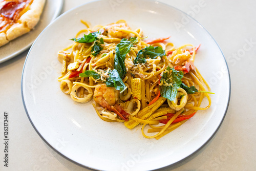Menu food spaghetti on white plate