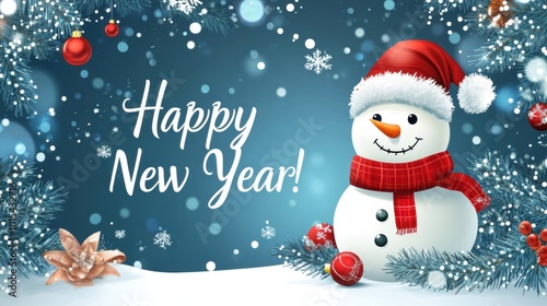 Merry Christmas and Happy New Year greeting card design with snowman.