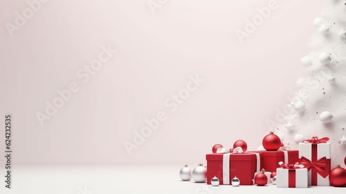 Merry Christmas and Happy New Year, Xmas Gift Boxes Decoration Background. Generative Ai