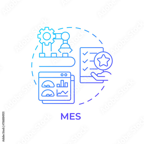 MES blue gradient concept icon. Manufacturing processes organization. Production scheduling, factory automation. Round shape line illustration. Abstract idea. Graphic design. Easy to use