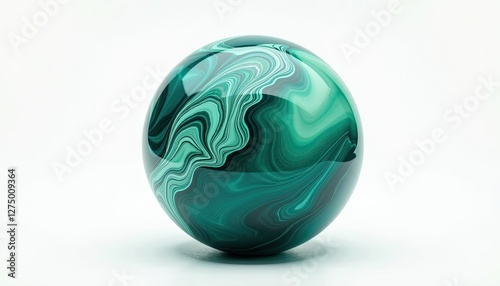 Mesmerizing Green and White Marble Egg Art on a Pure White Background. A green and white marble egg on a white background.