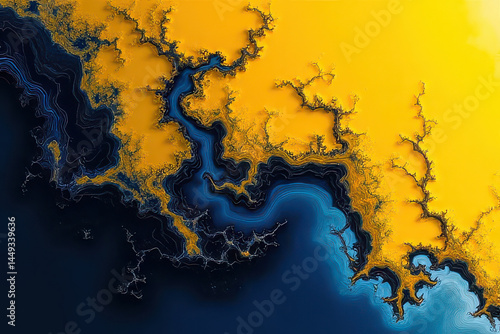Mesmerizing Ink in Water: Swirling Navy & Deep Yellow Colors Create Dreamlike Patterns