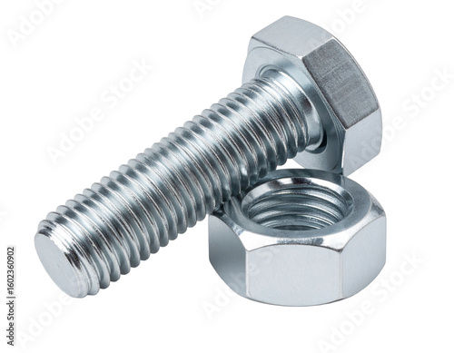 bolt, nut, metal, steel, fastening, hardware, construction, engineering, assembly, tool, workshop, maintenance, technology, fixing, industry, mechanic, precise, system, support, connect, equipment, strong, hard-wearing, mechanical, shape, design, part, element, fitting, work, object, surface, closeup, detail, shiny, threaded, circular, hexagon, profile, unit, isolated, studio, semi, reflective, modern, simplicity, basic, functional