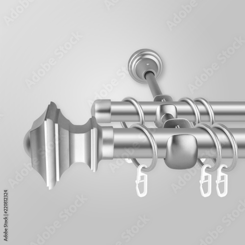 Metal curtain cornice and finials on the gray background. Metal ending for cornices.