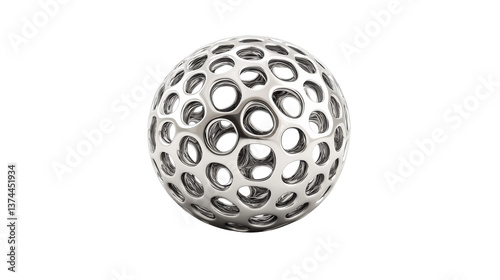 Metal sphere with circular openings, geometrical shape, 3d, cut out transparent