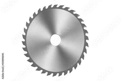 Metallic circular saw blade rotating with sharp teeth, isolated on transparent background, ready for cutting and woodworking