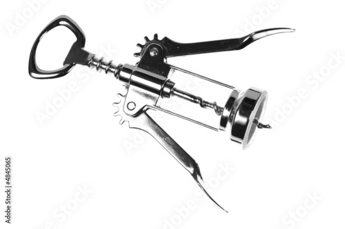 corkscrew, metallic, opener, wine, isolated, white, plug