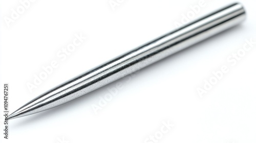 tool, sharp, pointed, metal, metallic, steel, chrome, silver, needle, pin, spike, instrument, object, hardware, equipment, craft, work, industrial, engineering, construction, manufacturing, workshop, stainless, shiny, gleaming, polished, smooth, clean, geometric, simple, abstract, macro, close, up, sharpened, background, white, surface, photo, studio
