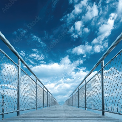 boardwalk, metal, railing, bridge, path, sky, cloud, perspective, blue, wooden, deck, nature, empty, vista, horizon, summer, daylight, freedom, travel, journey, adventure, open, clear, huge, reaching, high, peace, calm, serene, future, hope, strength, inspiration, destination, view, walk, tranquil, design, structure, architecture, metalwork, grid, mesh