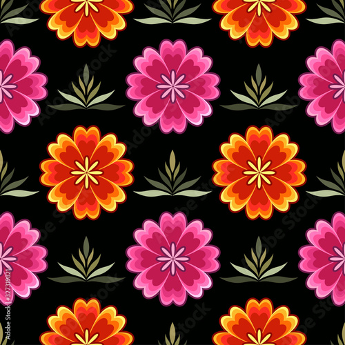Mexican decorative flowers. Ethnic boho ornament. Seamless pattern. Tribal motif. Vector illustration for web design or print.