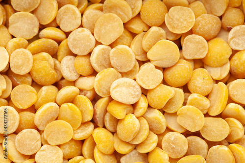 micro Close-Up of Organic arhar dal (Cajanus cajan) or split yellow dal Full-Frame Background. Top View