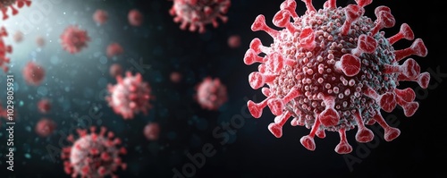 Microbes virus illustration on dark background, red details