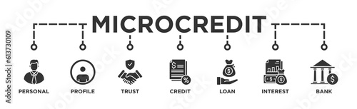 Microcredit banner web icon vector illustration concept with icon of personal, profile, trust, credit, loan, interest and bank