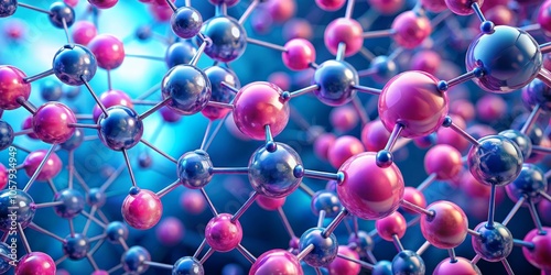 Microscopic Molecular Network in Pink and Blue Abstract Close-Up of Vibrant Spheres and Metallic Rods, Luxurious and Modern 3D Illustration for Science and Technology Concepts