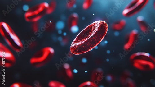 Microscopic Red Blood Cells Flowing, Dark Background, Medical Research
