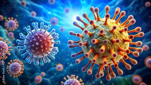 Microscopic Viral Composition Detailed 3D Render of Coronavirus, Virus Structure, Microbiology, Virology Virus, Infection
