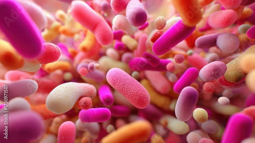 flora, three-dimensional, microscopic, stock, illustration, health, guts, digestion, health-giving, wellness, intestinal, biology, science, natural, microbiology, healthy, immunity, laboratory, scientific, medicals, organism, research, educational