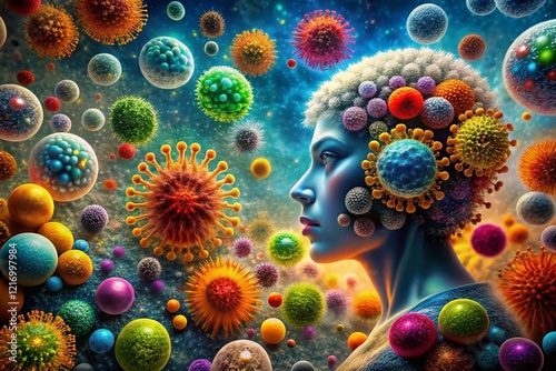 Microscopic World: Double Exposure of Virus & Bacteria with Human Cell