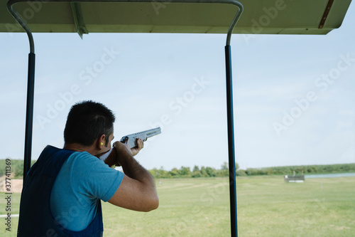 weapon, loaded, hold, gun, green, open space, gaze, copy space, unusual, fire, training, file, train, eye, target, exercise, summer, danger, spring, court, sport, confidence, smoke, concentration, shotgun, clay, shot, center, set, cartridge, safety, bullet, round, blue, rifle, athlete, reload, munition, reflex, munition, refine, alone, recoil, aim, ready, adult, projectile, precision, point, detail, 1, mag, caucasian, white, man, male, person, people, adult, 30s, grown-up