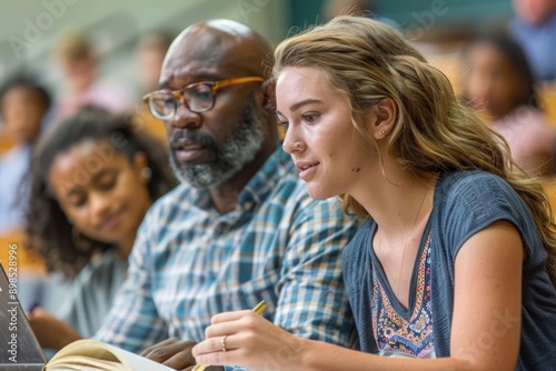 education, teacher, classroom, adult, college, woman, course, older, class, studying, tutor, people, man, student, lifestyle, back to school, university, learning, african american, assistance, female, indoor, lecture hall, male, prof